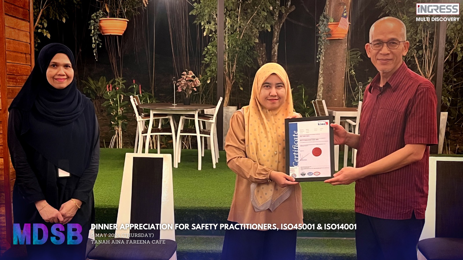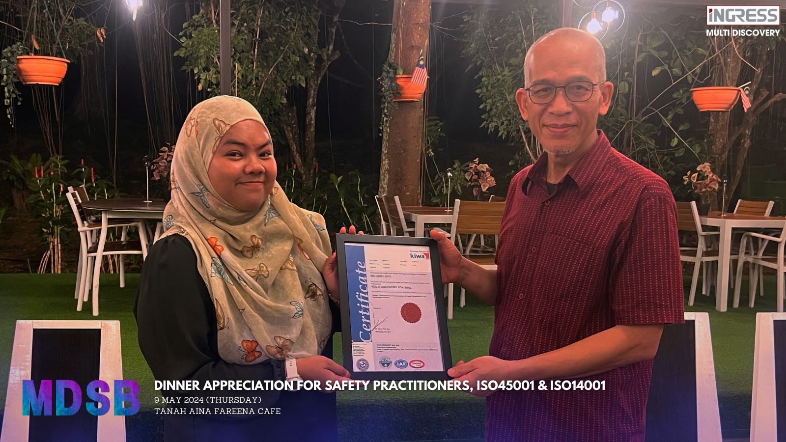 MDSB has received the recognition of MS ISO 45001:2018 – Occupational Health and Safety Management System and MS ISO 14001:2015 – Environment Management System certified by Kiwa International Certification (M) Sdn. Bhd. on 14th March 2024.
